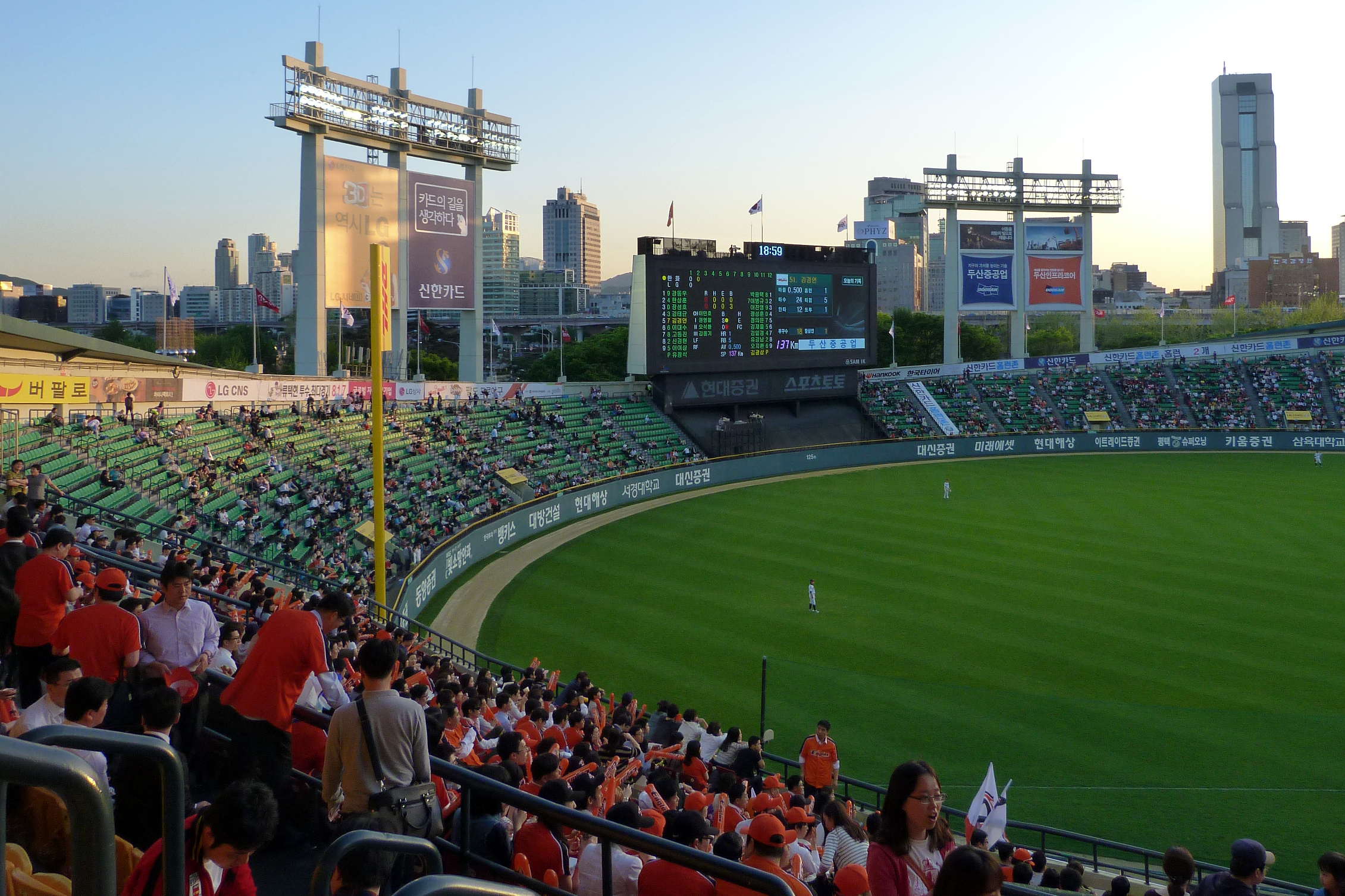 I usually sit in the outfield but decided to go in the main stand for a change. My seat in block 330 was high enough up for me not to have to look through the netting and towards the edge of the Hanwha fans. There was a decent turnout in support of the Daejeon team, although I imagine that a lot of their fans will be living or working in Seoul.