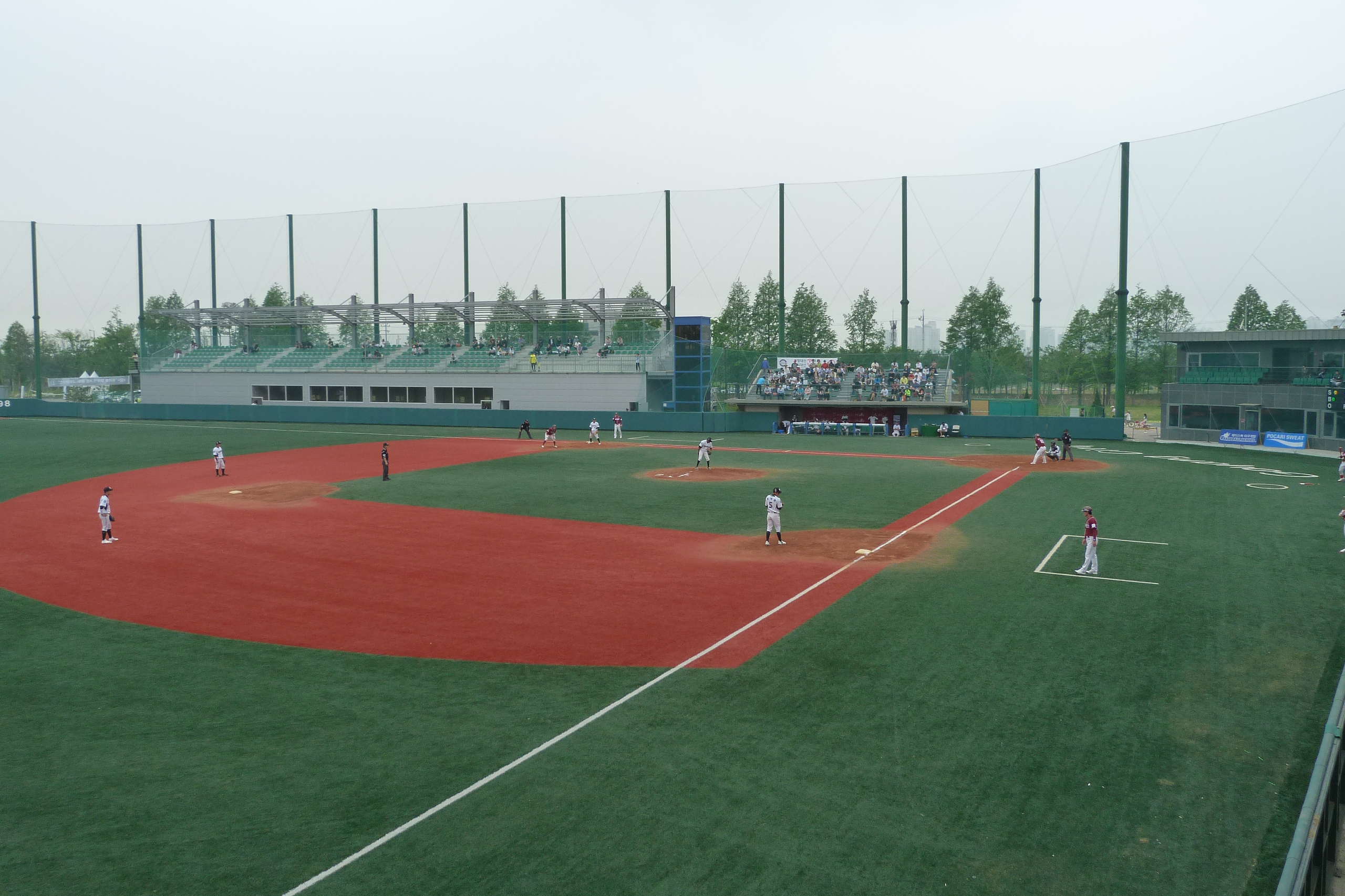 By the time it got to Saturday though I was keen to see some sport and whilst my options were limited by having to fly to Oman that night, I’d identified a couple of possibilities. I could head out to Icheon and take in a double-header of Doosan Bears second team in a one o’clock Futures League baseball game followed by Icheon Citizen against Jungnang Chorus Mustang in the Challengers League a couple of hours later. Or, to give myself a bit of much-needed exercise, I could have walked eastwards along the north bank of the Han River for about three hours until I reached Champion’s Park which is where LG Twins play their reserve baseball fixtures. It’s also where the French team did their training during the 2002 World Cup, although I suspect that they’ll have used the football pitches rather than the baseball field.
