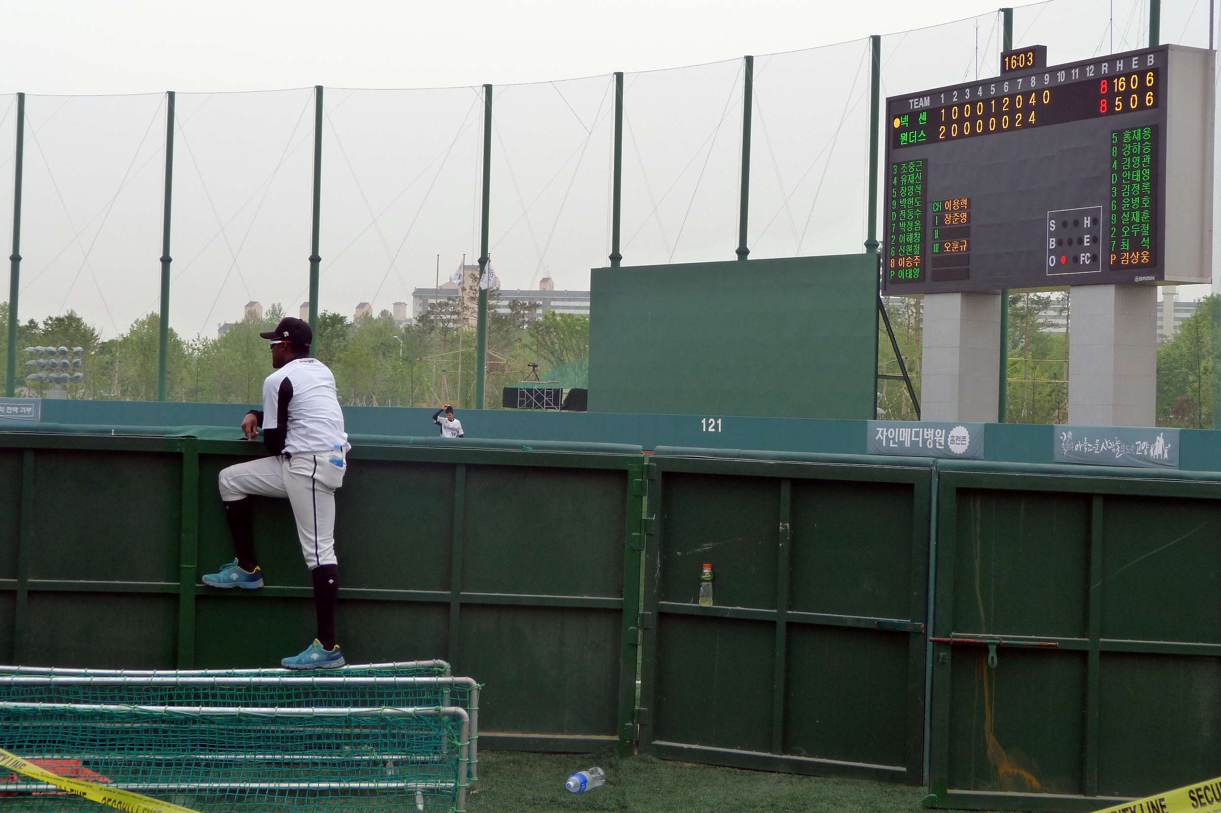 He gave up a run in the first before Goyang fought back with a two run homer from Hong Jae Yong that cleared a twenty metre high fence at the outfield and still looked to be rising as it disappeared into the park next door. Two-one to Goyang.