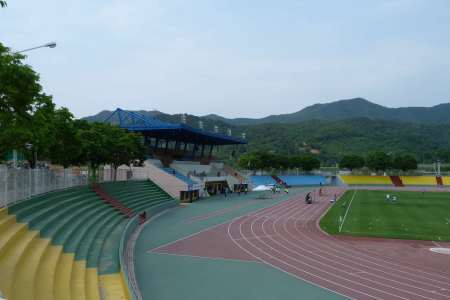 The Yesan stadium is some distance out of town so we took a taxi. We had a bit of time before kick-off which allowed us to watch an over-fifties tournament on the pitch across the car park before having a walk around the ground.