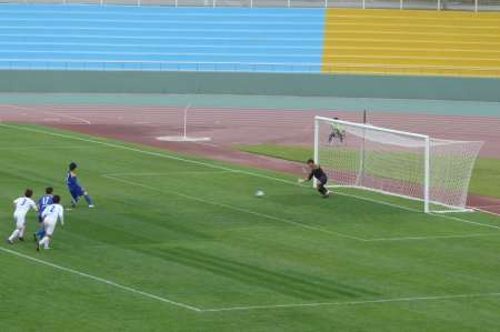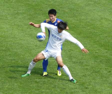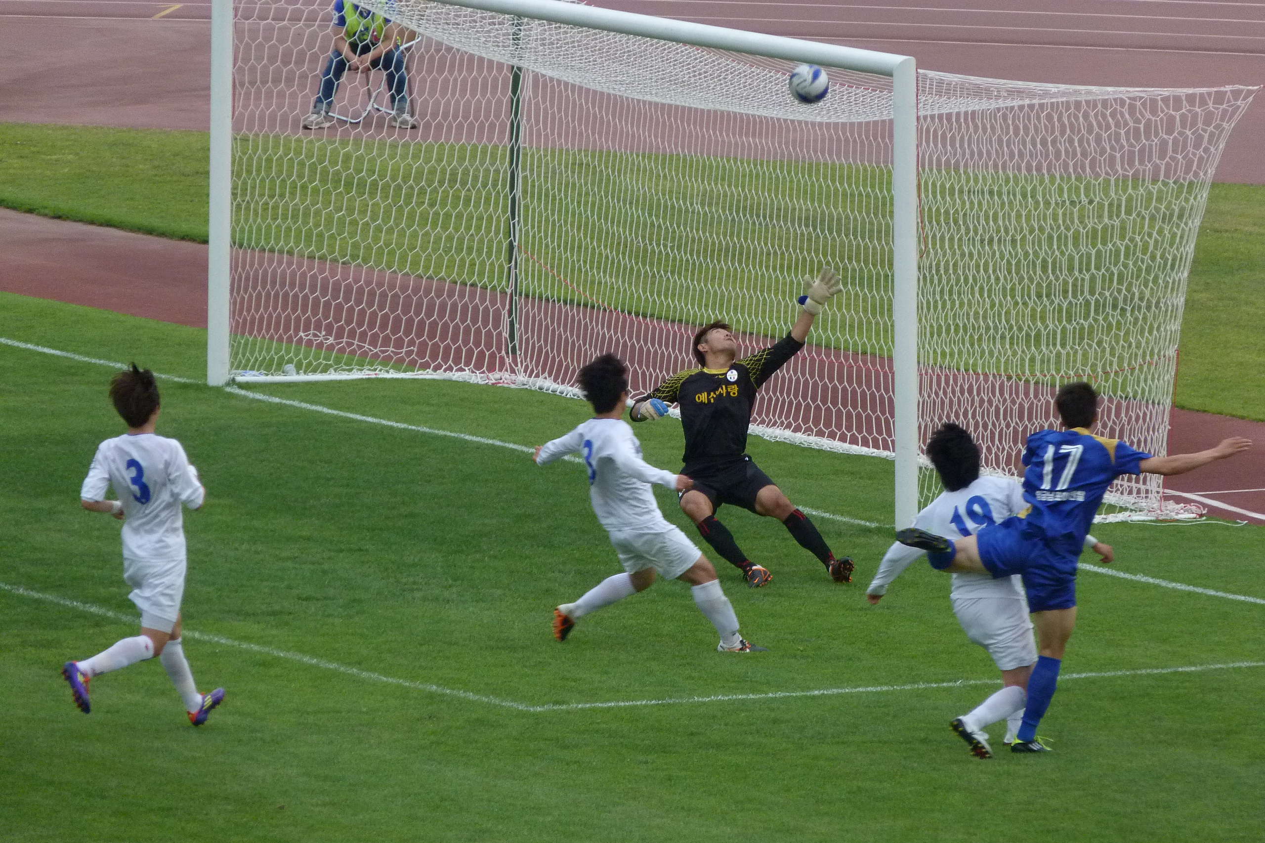 As we moved into the second half it was still a game that could have gone either way with each side adding another goal to make it two each. With twenty minutes remaining Icheon striker Na Gwang Hyun was brought down in the box. He invoked playground rules and took the penalty himself, placing it to the keeper’s right. The home goalie Kim Dong Woo guessed correctly though and palmed it away.