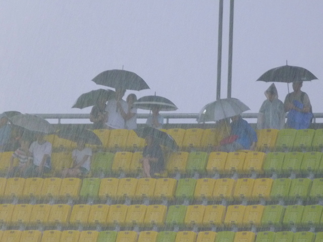 Both sets of fans were impressive, braving the rain in the uncovered ends of the stadium. The official attendance was given as 17,645 but I’d have estimated it to have been somewhere between eight and ten thousand. That’s still pretty good when you consider the weather.
