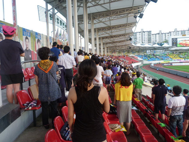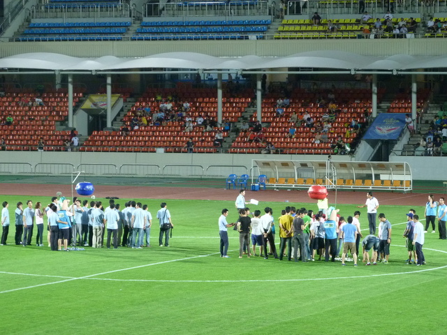 The half-time entertainment consisted of about fifty people milling about and taking part in something that I couldn’t fathom. With Seongnam being owned by Sun Myung Moon’s Unification Church I was hoping we might be in for a mass Moonie wedding. If they did all manage to get married before the teams came back out again then they did it with a minimum of fuss and even less confetti.