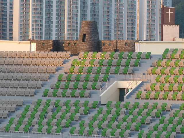 In a nice touch a tower similar to those in the Suwon Fortress wall had been included behind the goal to our right. It looked completely pointless, which makes it even better in my eyes. I did wonder as to whether they had knocked one of the originals down to provide the building materials. Next time we visit I’ll try and have a closer look.