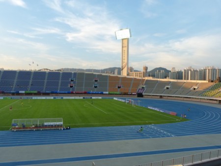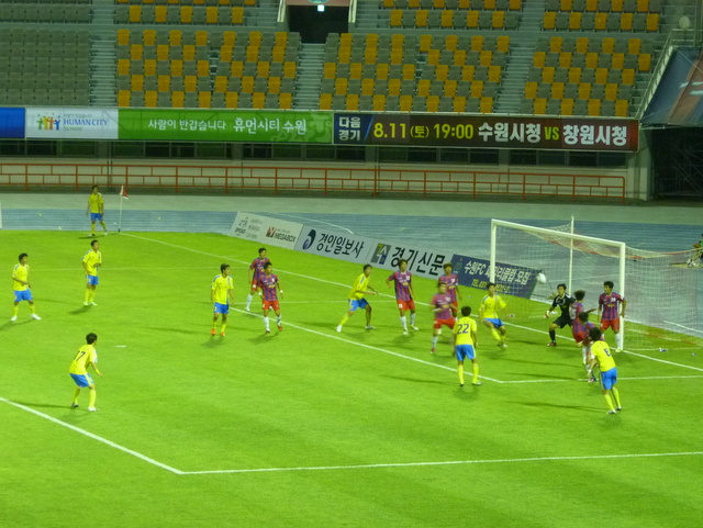 Suwon City against Ansan H was the second National League game of the day for Jen and I. The problem though, was getting there. We’d watched Yongin City take on Busan Transportation earlier in the afternoon and had an hour between the games to get from the Yongin Football Centre to Suwon’s Civil Stadium.