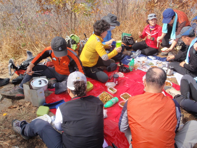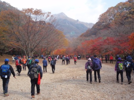 It was a steep climb and it took us an hour to reach the Yugunchi Pass, which is the start of the main ridge and the place where Korean Master Monk Huimuk gave the Japanese a pasting in 1592. Forty minutes later we got to the Janggunbong summit where the crowds of hikers made it difficult to find a place to stand. I suspect that a lot of them had approached from the opposite direction after taking a ride to near the top in the cable car. It’s a shame that there aren’t any Master Monks around these days to keep the crowds down.