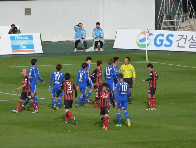 Initially the Suwon players didn’t have too many complaints about the flag staying down but once someone had seen a replay on either the big screen or on a monitor in the dugout they were outraged. At one point it looked as if their coach was calling them off the field in protest at the perceived injustice. Eventually order was restored and the remaining minutes were played out for a one-all draw.