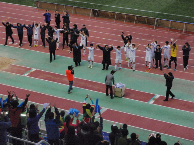 It was a good game. Ulsan took the lead mid-way through the first half when Kim Byung Oh finished a well-worked move. The home side held the advantage until ten minutes from time when Korail’s Lee Seung Hwan curled a free-kick from outside of the box off the post and into the far corner.