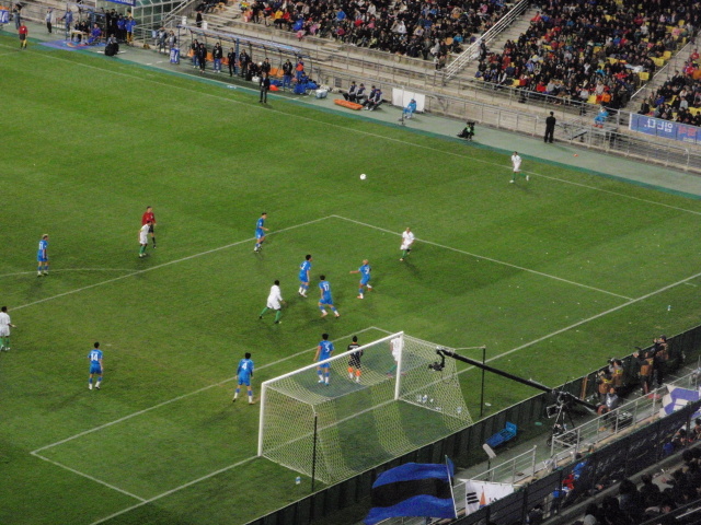After queueing in vain for more beer we took seats in the upper tier of the South stand behind the goal and it wasn’t long before Kwak Tae Hwi put the hosts a goal up. As the first half wore on it was interesting to see the ground fill up. There wasn’t enough room in the two open stands allocated to the home fans and so people were just hopping over the fence and finding seats alongside the away fans in the North or in the posher West stand.