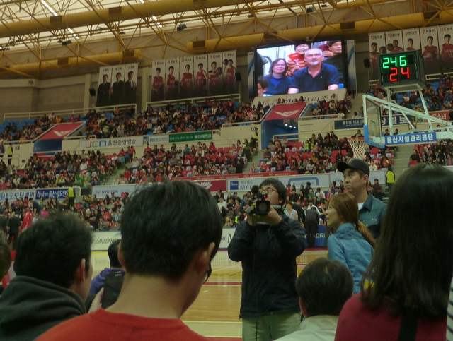 Ulsan are having a decent season so far and went into this game in third place in the rankings. It isn’t going so well for Wonju this year and they were down in ninth place. I’m surprised really, as they finished top of the standings last season, losing only ten games out of fifty-four. They’ve also benefitted from the rule that makes the ‘half-Korean’ players move between teams every few years. In the summer they managed to pick up Lee Seung Jun, formerly known as Eric Sandrin and also briefly known during his stint with the Harlem Globetrotters as ‘Shanghai’.