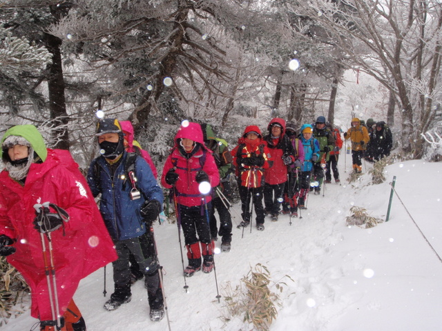 It was relatively quiet on the way up. There were a few smallish groups of hikers and the odd lone bloke or couple. The temperature had dropped to around -7C and whilst there was a steady light snowfall, there wasn’t much wind. We couldn’t see very far, but the trees around the path looked spectacular in the wintery conditions.