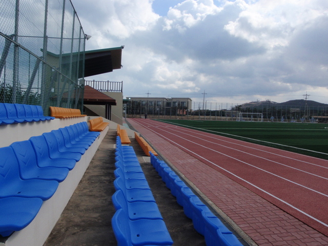 We got lost when we started walking again. I’m not sure how, as the trail is well signposted with ribbons and arrows spray painted on walls and the road. It wasn’t such a bad thing though as we stumbled across a football ground. It looked as if it belonged to an adjacent school, but with a couple of small stands down one side it wouldn’t have looked out of place in the Challengers League.