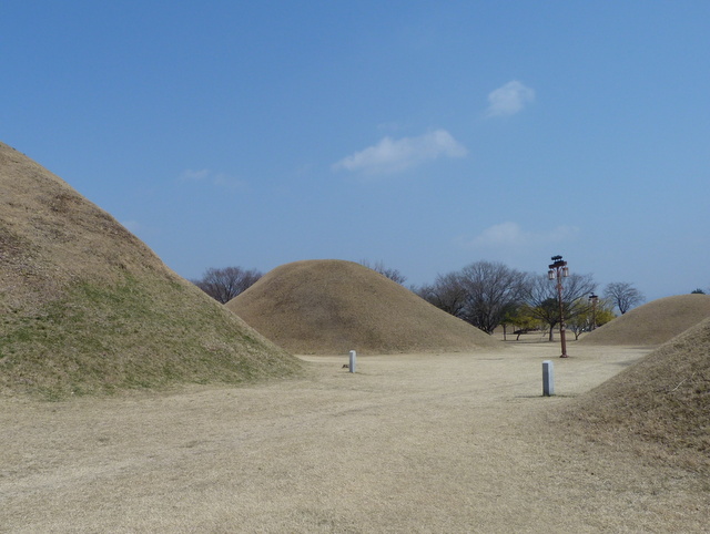 We took a luxury bus to Gyeongju before lunch, the journey takes an hour and seems a bargain to me at three quid. Gyeongju is famous for barley bread and dead kings. You can’t walk more than ten yards without stumbling across one or the other. We ignored the barley bread shops but one of the many dead king parks proved ideal for a picnic lunch.