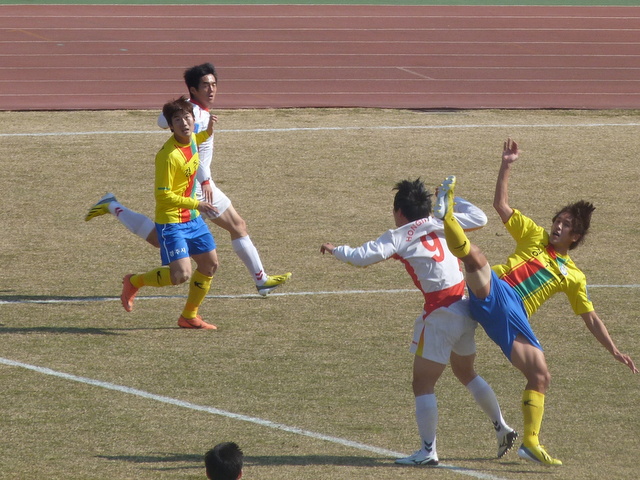 Gyeongju nearly got their equaliser a minute from time when a sloppy backpass let one of their strikers in. Fortunately for Hongik their keeper was a bit more on the ball than the defender had been and he was able to dash out quickly enough to get a foot in.