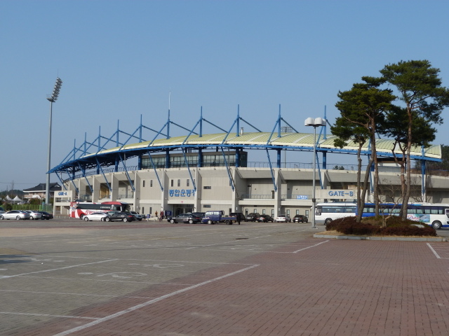 So, there’s your restaurant review, or at least it would be if I’d told you where we’d eaten. Time for the game. Chunnam Yeonggwang were taking on Cheongju Jikji in what would have been a third tier game last season but due to the new second division of the K-League was now effectively a fourth division tie. We could have walked to the ground, having seen it on the way into town but with it being uphill we took a five-minute cab ride.