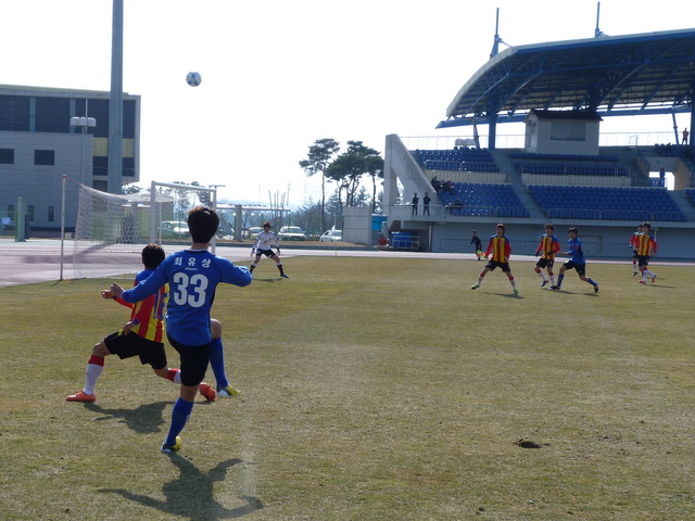 Cheongju had plenty of opportunities in the second half to increase their lead, the best chance coming with a quarter of an hour remaining. One of their strikers was put clear through after the home defence got confused by someone else moving out from an offside but not active position. The lad with the chance somehow managed to pull his shot wide from five yards out.