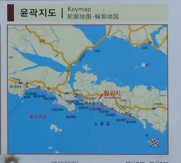 The reason for all the bus journeys was that we wanted to be at one end of the Haebyeongil Trail. It’s a five section walking route with one end being at Kkoti beach and the other being, well, I don’t know where. I’m not sure the entire route has been revealed yet. Sections four and five definitely exist though and our plan was to walk the twelve kilometre section five from Kkoti Beach to Baeksajahang.