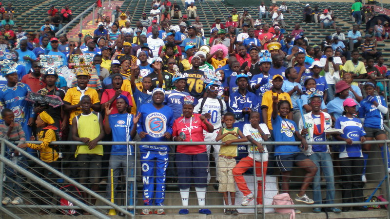 There was a smaller group of Swallows fans just to the left of the home support and they were making just as much noise. There was no animosity between the two groups and none of the singing or chanting appeared to be aimed at the opposing supporters. Mind you, none of it seemed aimed at the pitch either, it just looked to be a bunch of people who had gone out for a sing and a dance and by chance happened to be doing it near a football pitch.