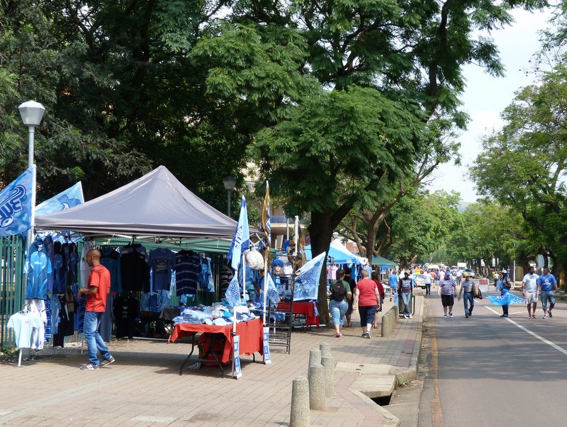 It was an easy enough walk to the stadium from the hotel and despite all the scare stories that I’ve heard about wandering around in Pretoria it seemed safe enough. A few of the locals were renting out their drives for parking, others, perhaps not so local, were charging for guiding cars onto any available bit of land and then ‘looking after them’.