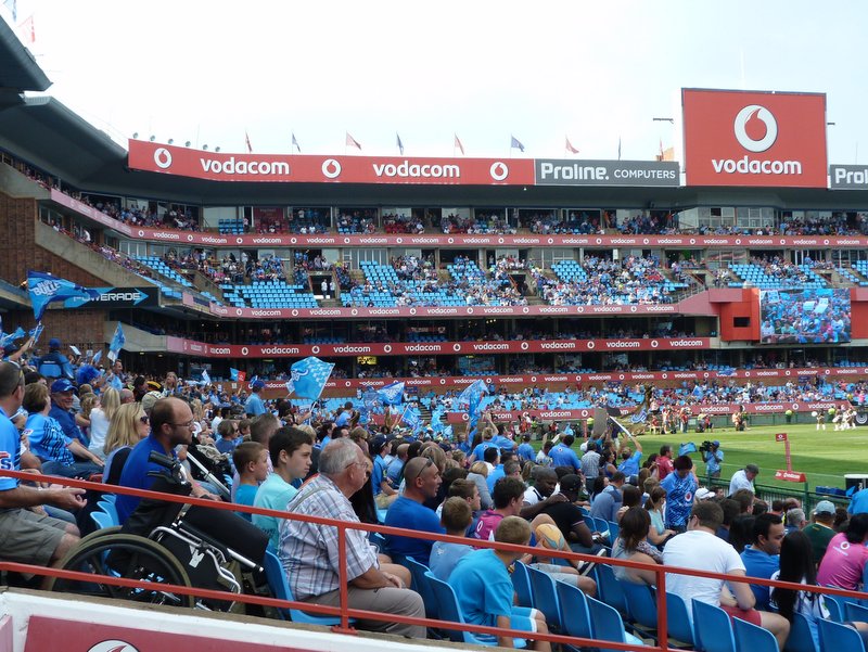 Loftus Versfeld is quite an old stadium, dating back about a hundred years, but with plenty of modifications over that time, notably a few dozen executive boxes, which you won’t be surprised to hear were packed with people partying. Gits.
