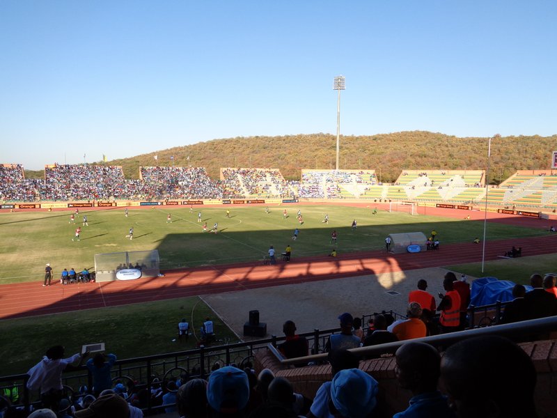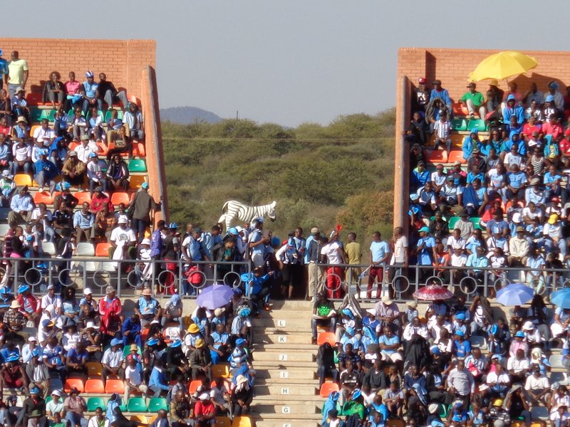 By the time the game kicked off I’d estimate that there around five thousand fans in the stadium. As ever, they kept arriving throughout the first half and probably a bit beyond that. One of them had brought what looked like a full-sized stuffed zebra. Perhaps he’d picked it up from the Mokolodi Game Reserve.