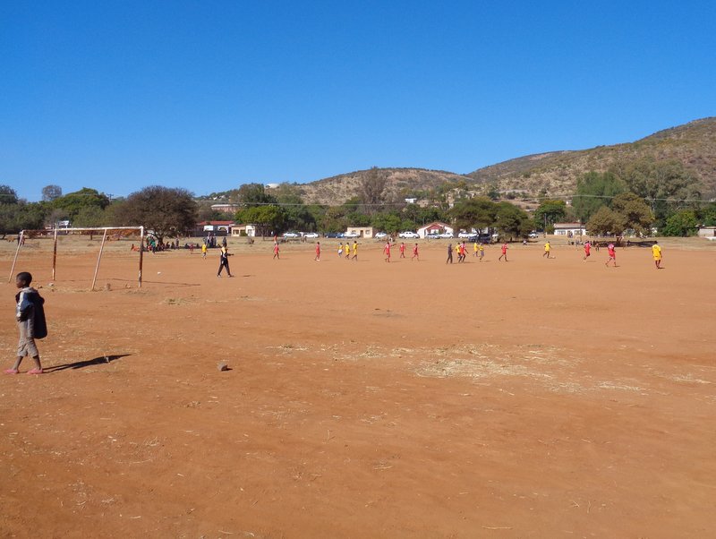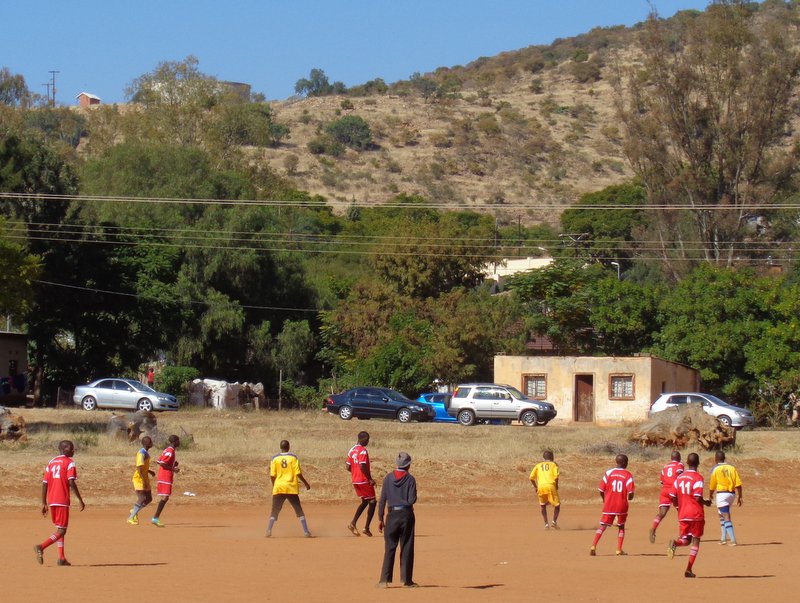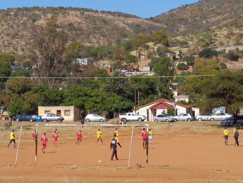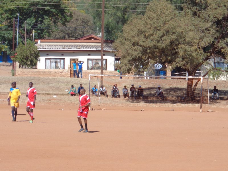 Whilst we were driving around Lobatse looking for the New Lobatse Stadium we stumbled across a game taking place on a pitch that we subsequently discovered wasn‘t too far from the ground we were after. It was a little out of town, or at least the part of town that had shops and offices. It did have cows wandering along the roads though, so that makes it the best part of town.