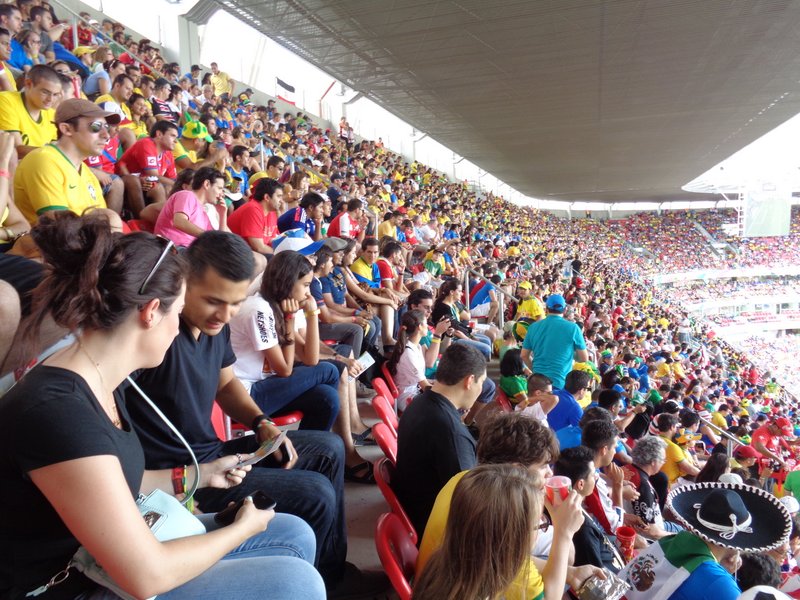 I’d estimate that as the game kicked off a third of the seats were unoccupied. I’m not surprised though as we can’t have been the only ones who underestimated the time necessary to get from Recife city centre to the stadium. There were still people arriving over an hour into the match and I suspect quite a few spent the entire game still in their cars and inching slowly forward.