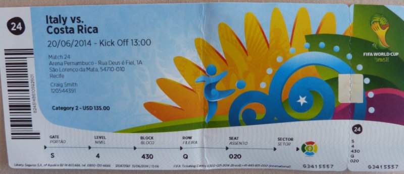 This game was quite a late addition to our trip. Originally we’d just planned on seeing the two games in Natal but when another of the FIFA sales windows opened I couldn’t resist buying a couple of tickets for Italy’s clash with Costa Rica in Recife.