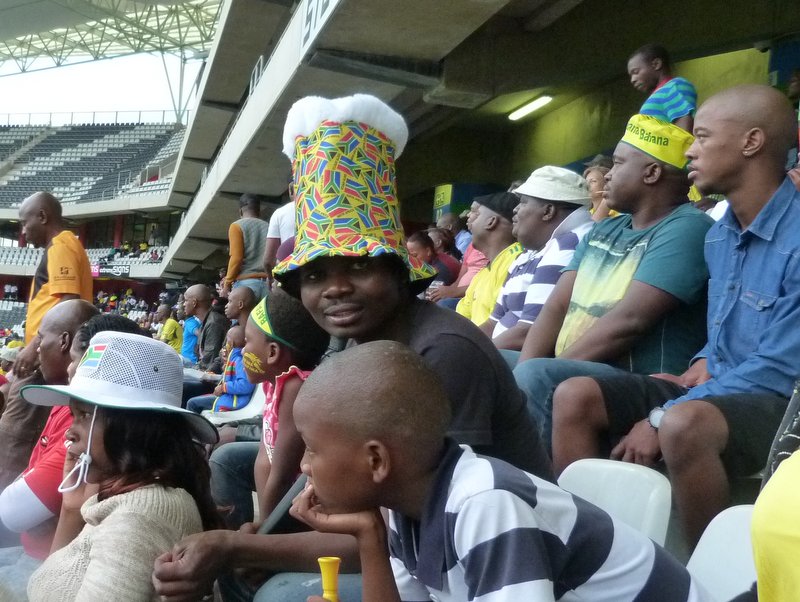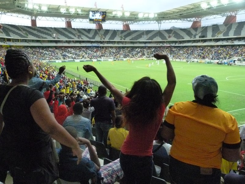 Bafana Bafana started well with the ball in the net after a minute. The celebrations on and off the pitch continued for a minute or so despite the linesman’s flag ruling the goal out. I’m sure some people near us were unaware that the effort had been disallowed and continued basking in their team’s early success.