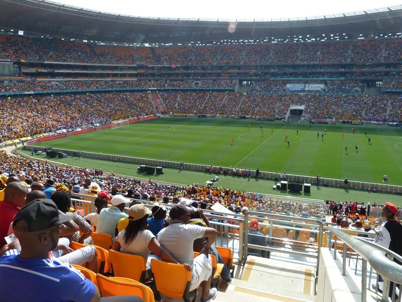 Jen and I had been to this fixture last season and knew that we needed to set off early. I’d allowed an extra hour but it wasn’t enough. The heavy traffic was made worse by the power cuts rationing electricity knocking out the majority of traffic lights. We tried any number of short cuts but the congestion meant that we didn’t arrive at the FNB stadium until around twenty minutes to kick-off.