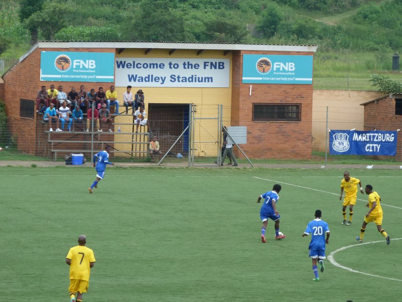 City play just outside of Pietermaritzburg at the Wadley Stadium in the Georgetown township. I wonder when the term ‘township‘ will be replaced by just ‘town‘? It sounds so much better, a bit like the way that streets in every new housing development in England are called things like Badger Glade or Honeysuckle Meadow even if they are sandwiched between the sewage works and an industrial estate.