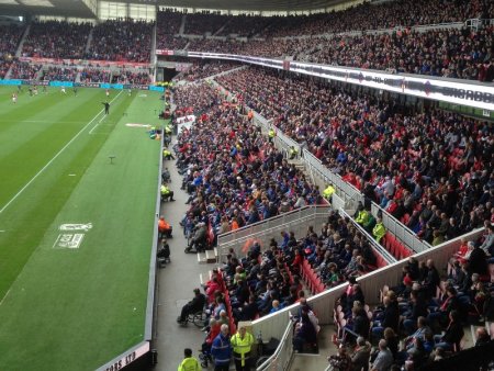 I don’t get to many Boro games these days and so I don’t have to shell out for a season ticket any more.  However I’m happy to spend the money that I would have done watching games in a bit more comfort and so for the Southampton match Tom and I were in the Middlehaven Lounge.