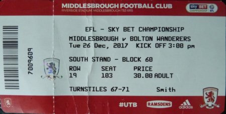 The match wasn’t a home sellout, unusual for Boxing Day and the overall attendance was further reduced by Bolton only bringing a couple of hundred fans with them. David Wheater was making a return to the club he formerly captained and, given that he sometimes turns up in the Boro support at away games, I was a little surprised by the lack of acknowledgement for him. Another of the Youth Cup winning team from 2004 was also playing for the visitors but I didn’t realise until I spotted that familiar Taylor strut.