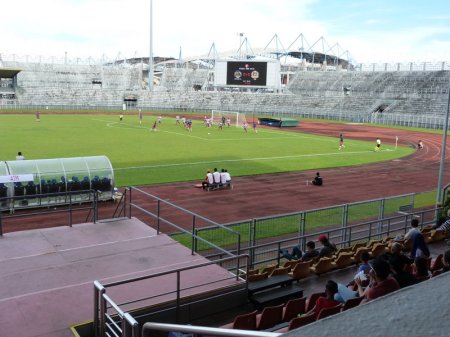 The Negeri Stadium seemed quite old. We were in the covered main stand. The rest of the ground comprised of a concrete open-ended horseshoe with a roof over the section opposite to us. I don’t think I saw anyone in any of the other stands.