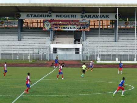 After a Saturday night in Bako we took the boat back along the coast to Kuching. Our flight wasn’t until the evening and so that gave us the opportunity of taking in a third tier game at the Negeri Stadium.