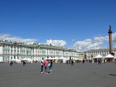 There’s a much bigger museum in town, the Hermitage and whilst it didn’t appear to have any bovines blessed with multiple bonces it did have some Eskimo corpses that had been discovered in glaciers somewhere. Unfortunately the queues for tickets were too long for nothing better than icy Inuits and so the most we saw was the building and the big square outside.