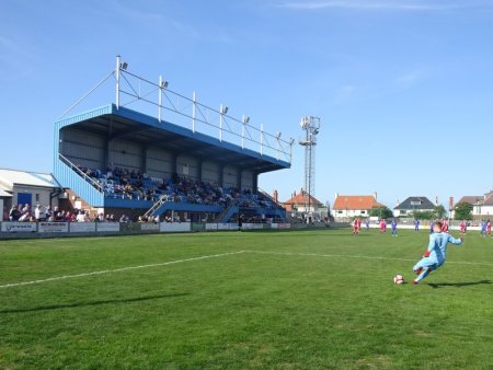 It was a tenner admission for me with the boy getting in for free. I’d not seen a game at Whitby before, although I’d walked past their ground a few times. They’ve got a big stand down one side with a smaller covered standing area opposite. The only other time that Harry has been to the match with me we were in the Fenton Suite hospitality at the Boro. I thought that standing might be too much of a shock to the system and so we sat in the main stand.