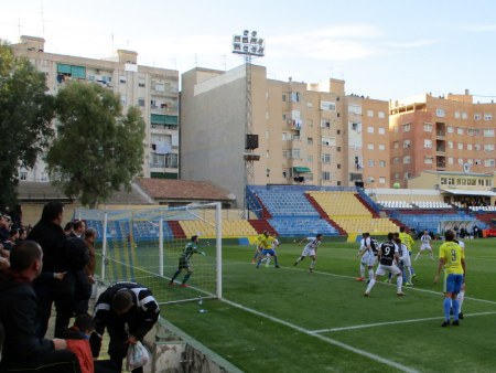 The most suitable football option was a third tier Segunda B game an hour or so down the road at Orihuela. I cut it fine getting there and with no parking in view at the Estadio Municipal Los Arcos we had to put the car in one of those underground car parks some distance away.