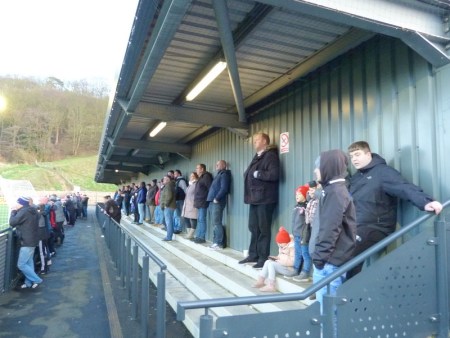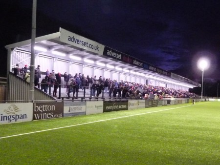 I arrived at the ground with a few minutes to go to kick-off and realised that I had no cash in my wallet. I couldn’t find out from anyone in the queue if I could pay with a card and so had to retrace my steps back towards the town centre to find a cash point. I missed the first quarter of an hour and after paying my twelve quid admission I was relieved to find that there was still no score.