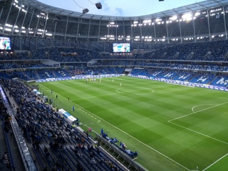 The VTB Arena is an incredible venue. The Lev Yashin football ground is only part of the overall arena, with one end of it being used for a hockey stadium. From the outside though you can’t tell that it is accommodating two sports and it just looks like one big stadium. I can’t really do it justice with my photos, so I suggest that you google the plans for it instead. I was given a mask and gloves at the turnstile and then scanned and searched as I entered the ground.