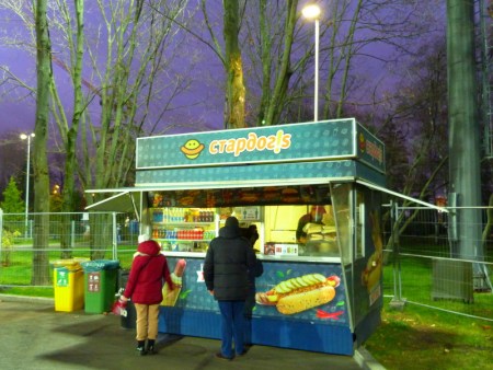 Spartak’s second team had their Boro strips on and if you squinted hard enough the home side could have passed for Darlo. The other sartorial matter of note was that the linos were wearing tights. I should have done the same really as a pair of jeans wasn’t much protection against a temperature that was slipping further below zero.