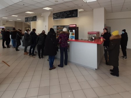 We had barely restarted when Khimki lost one of their defenders for a DOGSO foul. The red card looked harsh to me as the foul was barely in the attacking half of the field. However, unless the video ref had nipped out for a piss I trust that it will have been carefully reviewed. Sovetov had the better chances in the remainder of the first half but the ten men kept the deficit to a single goal at the break. I risked the ice underfoot to get a large cup of tea that was too hot to handle without gloves. Ideal really in the circumstances.