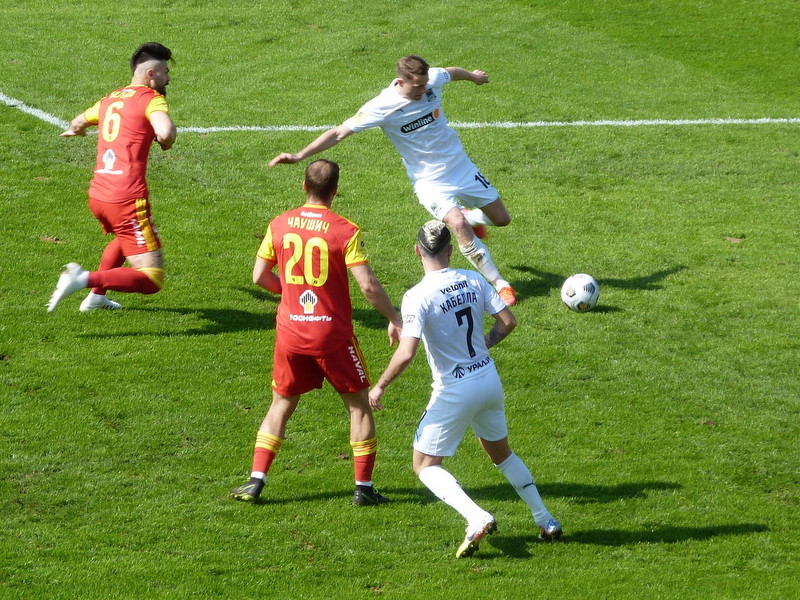 My move also enabled me to observe the away fans to my left. They were required, as is the custom in Russian grounds, to watch the match through a fence. I’ve not seen any trouble yet at any game that I’ve been to so it all seemed quite unnecessary to me.