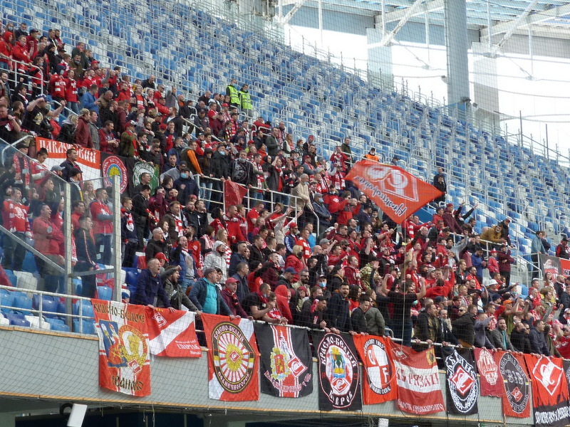 Krasnogvardeets, in maroon, were a goal to the good when we arrived and took seats in the single seated area along one side. The ground has a capacity of just over three hundred but with only around forty people in attendance there was plenty of room.