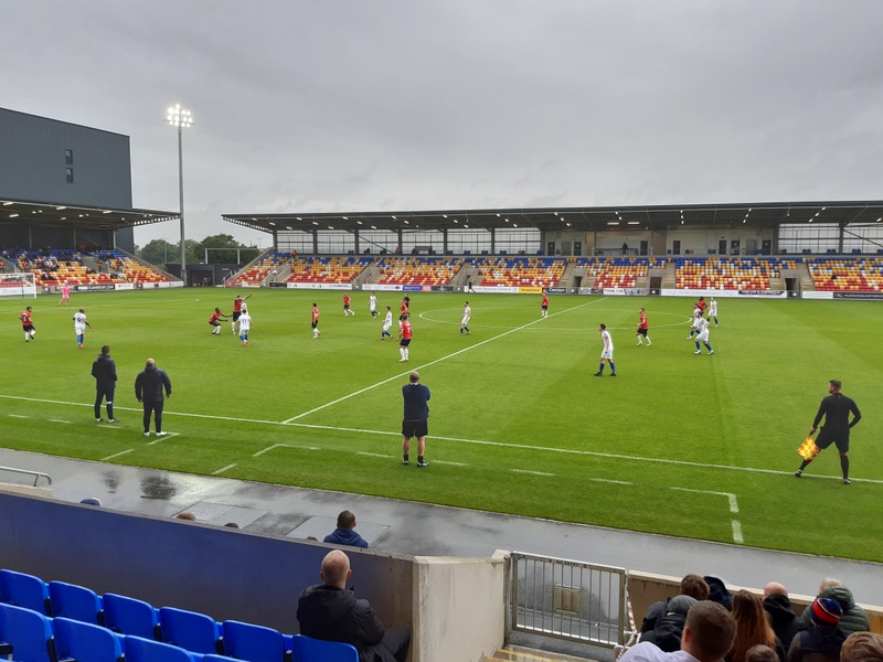 The Community Stadium is freshly opened for this season and looked appropriate for the needs of a sixth tier club like York. It holds 8,500 in four separate covered stands. The capacity wasn’t tested for this game though with the stand opposite being empty whilst Whitby had brought around three hundred fans with them who were in the stand behind the goal to my right.