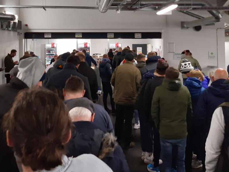 York were two-up at half-time courtesy of a couple of scrambled goals. I stood in line for a pie and some coffees which I was able to get in time for the restart despite the queue.