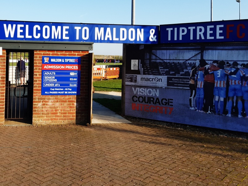 Next day the college session finished early and I was back in Maldon for around quarter past four. That meant that as I reached their Wallace Binder ground there was still around half an hour left in their FA Trophy Second Qualifying clash with Felixstowe and Walton.