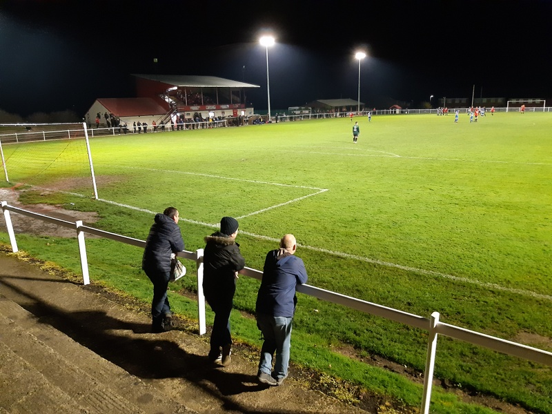 I got myself chips and gravy at half-time and having experienced the condemned stand I wandered around to the terracing behind the goal to the right. There were around a hundred and fifty spectators in total with a few groups of teenagers having a laugh, a selection of solitary old blokes like me and some dog walkers who were combining a bit of football with exercising the pooch.