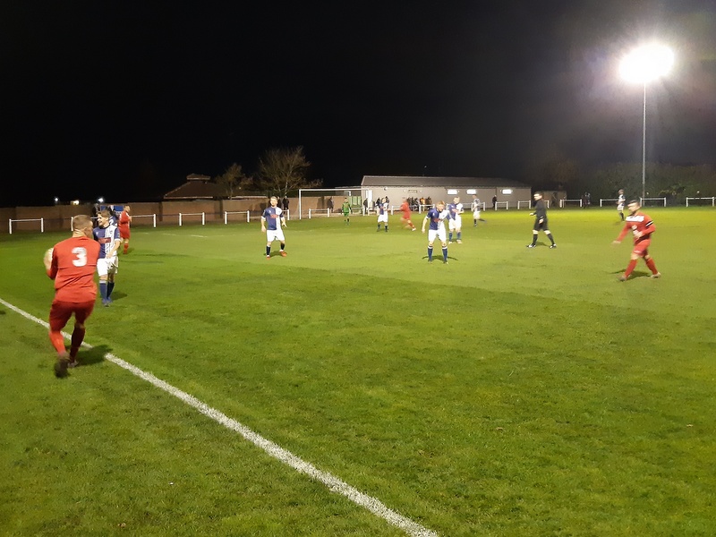 Shotton were in blue and a man down from about a quarter of an hour in after an uncontrolled tackle that sparked plenty of shoving from both teams. There was niggle throughout the match but no goals in the first half. We warmed up with a coffee and a tea from a hut behind one of the goals.