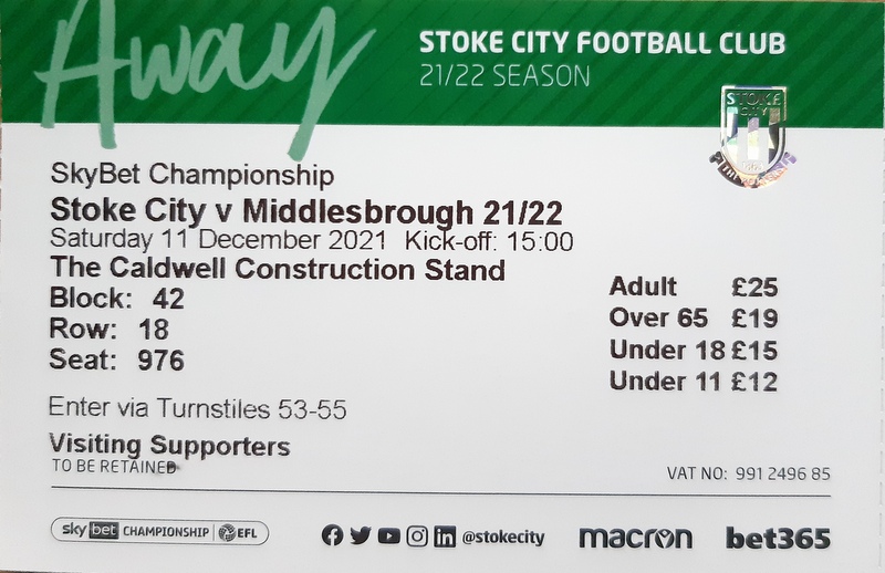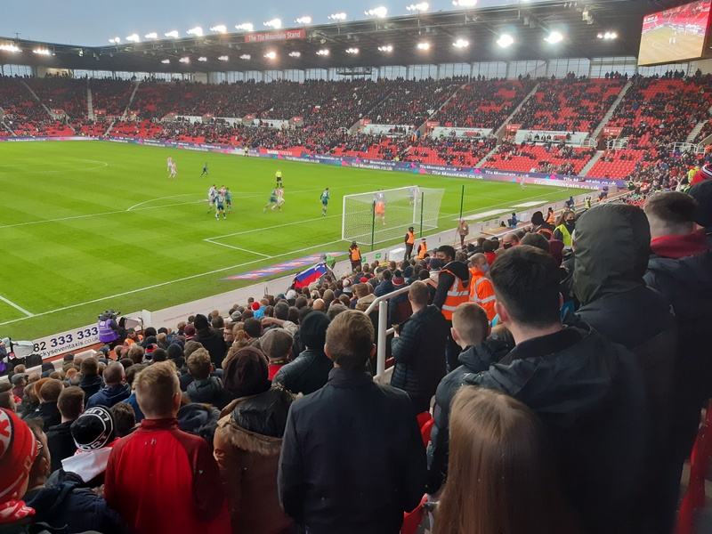 The Bet365 stadium, or the Britannia Stadium as it was formerly known, is another of those grounds that I’ve never been to but feel as if I should have done. Still, it’s never too late until they’ve been demolished and so I got myself a ticket in the Boro section behind one of the goals. The tickets didn’t quite sell out but with almost seventeen hundred there it was still a sizeable away contingent.